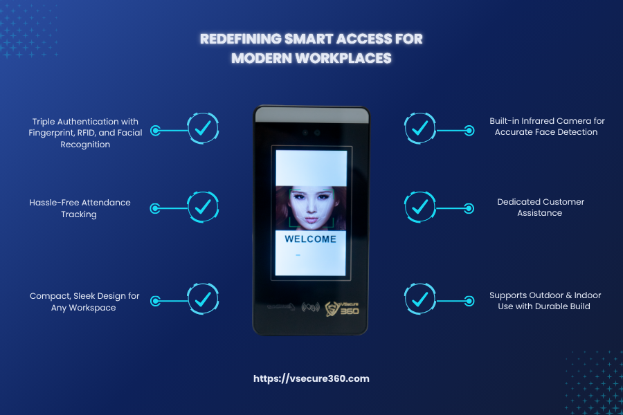 Designed for high security environments, the VLock Hawk K11 is a robust and intelligent access control terminal. Designed with precision and power, the Hawk K11 is the core of your security infrastructure, offer unmatched performance, real time identity verification, and seamless integration into existing security systems.With its bold design, cutting edge facial recognition, and advanced access protocols, the Hawk K11 ensures total control over who enters your premises.