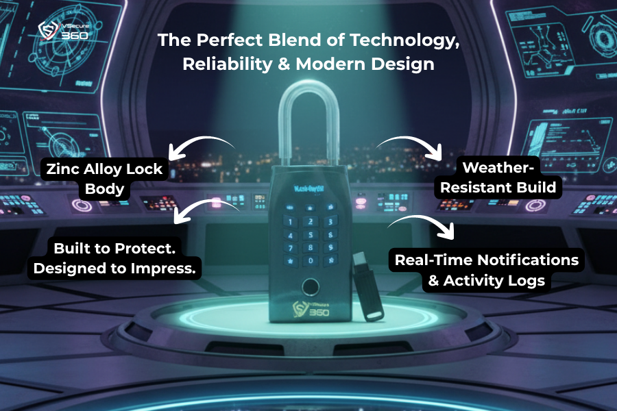 A smart lock box that combines innovation, durability, and style. Built with a zinc alloy lock body and weather-resistant construction, it delivers lasting protection. Stay informed with real-time notifications, activity logs, low power alerts, and emergency unlock options — for total peace of mind.