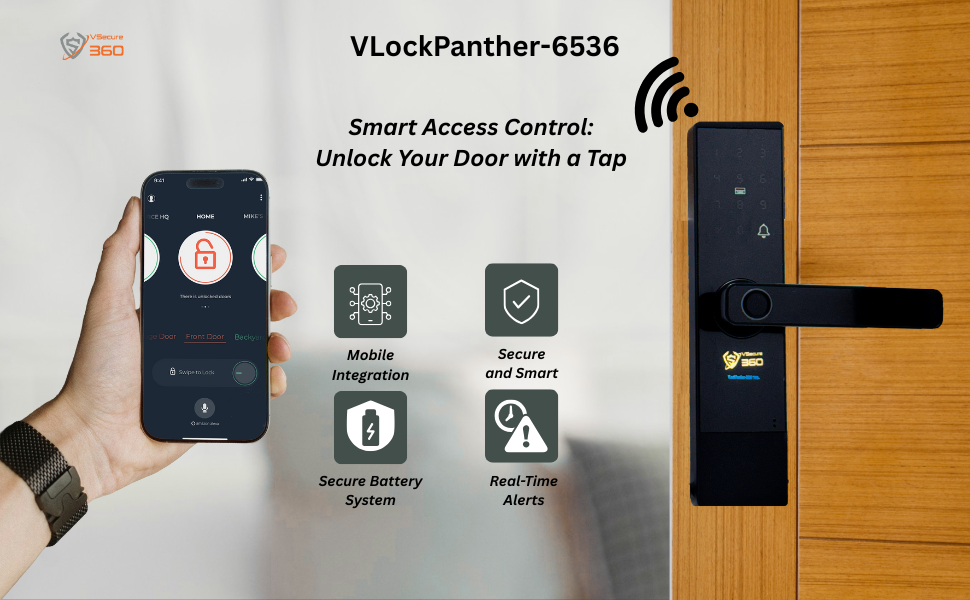 The VLockPanther-6536 combines modern convenience with advanced security. With mobile integration, you can control your door anytime, anywhere. Real-time alerts notify you of each entry, and its safe battery system guarantees continuous operation. This lock is smart and secure, providing easy access control and the dependability and security your office and home needs.